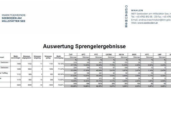 Anbei finden Sie das Wahlergebnis der Nationalratswahl 2024 der Marktgemeinde Seeboden am Millstätter See. Findes Sie hier...